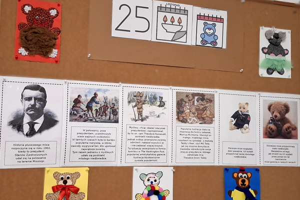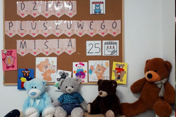 Uczniowie naszej szkoły nie mogą wyobrazić sobie dzisiejszego świata bez Pluszowego Misia. Jest on ich towarzyszem w beztroskiej zabawie oraz przyjacielem. Dlatego też 27 listopada 2017r. przynieśli do szkoły swoje ulubione maskotki i świętowali „Dzień Pluszowego Misia” poprzez wesołe zabawy z ukochanymi pluszakami.