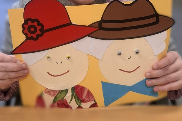 Z okazji Dnia Babci i Dziadka uczniowie naszej szkoły przygotowali wyjątkowe prace plastyczne przedstawiające wesołe portrety ukochanych dziadków. Dzieci z ogromnym zaangażowaniem i radością tworzyły kolorowe laurki, wkładając w nie dużo serca i staranności. Podczas zajęć najpierw wybrały kolorową kartkę jako tło pracy. Następnie z przygotowanych elementów wycinały okrągłe twarze babci i dziadka oraz siwe włosy. Kolejnym etapem było doklejanie charakterystycznych detali – kapeluszy, kokardek, muszek oraz ozdobnych kwiatków. Dzieci samodzielnie rozmieszczały elementy na kartce, ćwicząc przy tym planowanie przestrzeni i precyzję ruchów. Szczególną radość sprawiło przyklejanie ruchomych oczek oraz dorysowywanie uśmiechów, które nadały postaciom ciepły i pogodny wyraz. Każda praca była wyjątkowa i niepowtarzalna, ponieważ dzieci dobierały kolory oraz dodatki według własnego pomysłu. Zapraszamy do obejrzenia krótkiej fotorelacji z tych twórczych i pełnych radości zajęć.