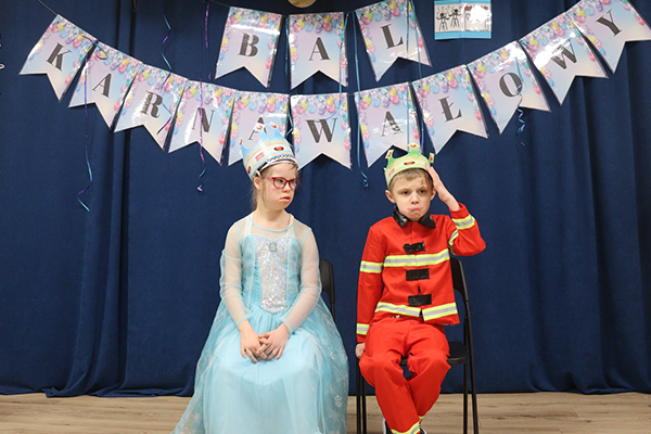 Bal karnawałowy to dzień niezwykły, długo wyczekiwany przez uczniów. Dzieci w pięknych przebraniach chętnie brały udział w zabawach i konkursach przygotowanych przez Panie. W przystrojonej karnawałowymi akcentami sali wszyscy bawili się wesoło.