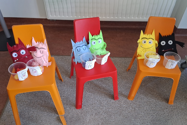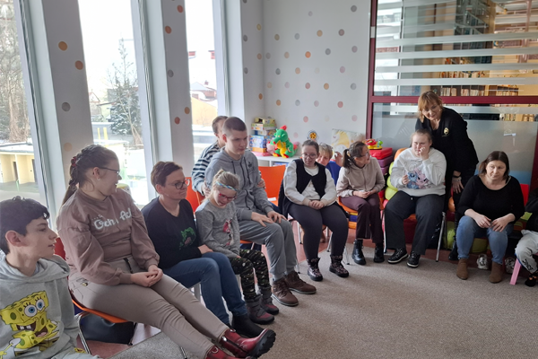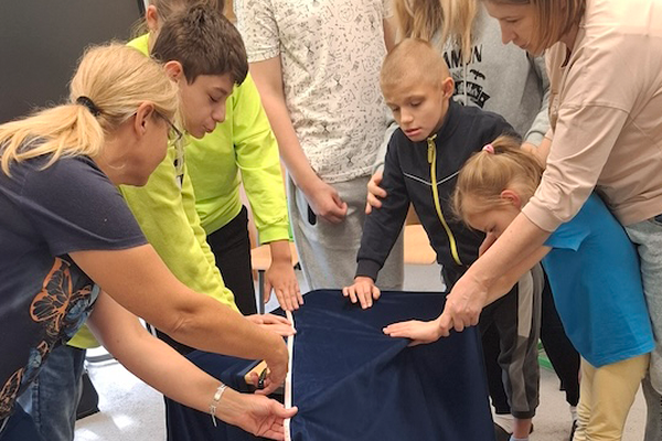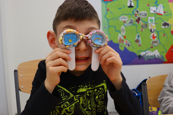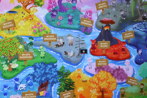 Kolejnym bohaterem, którego poznały dzieci, był Pan Łał z Wyspy Zdziwienia. To wesoły czuciak, który pojawia się wtedy, gdy coś nas zaskakuje lub gdy wydarza się coś nowego i niespodziewanego. Dzieci dowiedziały się, że zdziwienie to ważna emocja, którą można poczuć w swoim ciele – na przykład gdy szeroko otwieramy oczy, unosimy brwi lub zatrzymujemy się na chwilę, ponieważ coś nagle zwróciło naszą uwagę. Uczniowie obejrzeli bajkę pt. „Pan Łał z Wyspy Zdziwienia”. Podczas zajęć dzieci wyrażały swoje reakcje mimiką, gestami i obrazkami. Wskazywały piktogramy, przedmioty oraz ilustracje przedstawiające sytuacje, które mogą wywołać zdziwienie – zarówno te przyjemne, jak i te trudniejsze.