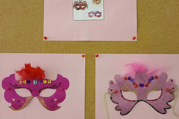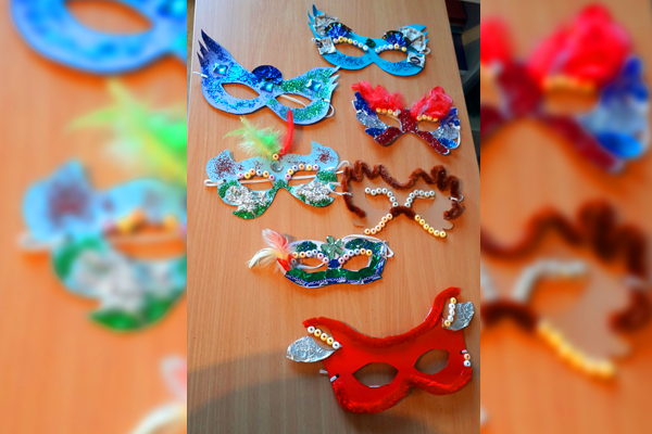 W ramach zajęć plastycznych uczniowie wykonali kolorowe maski karnawałowe. Dzieci z dużym zaangażowaniem wycinały kształty masek, a następnie ozdabiały je według własnych pomysłów. Podczas pracy nie zabrakło brokatu, piórek oraz różnorodnych dekoracji, które uczniowie starannie przyklejali, rozwijając przy tym sprawność manualną, kreatywność i wyobraźnię. Każda maska była wyjątkowa i odzwierciedlała indywidualny styl jej autora. Zajęcia dostarczyły dzieciom wiele radości i były doskonałą okazją do twórczej zabawy oraz wspólnego świętowania karnawału.