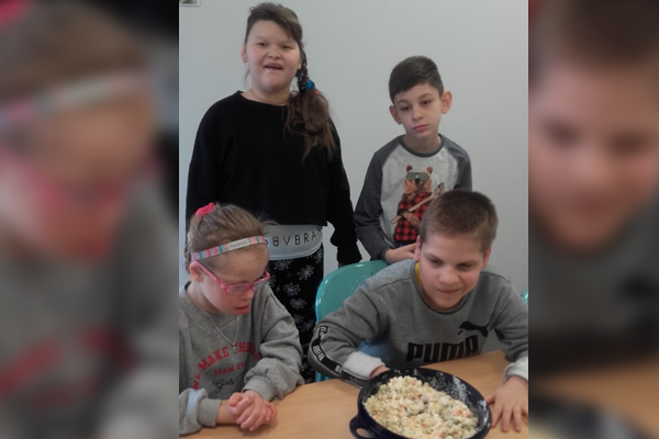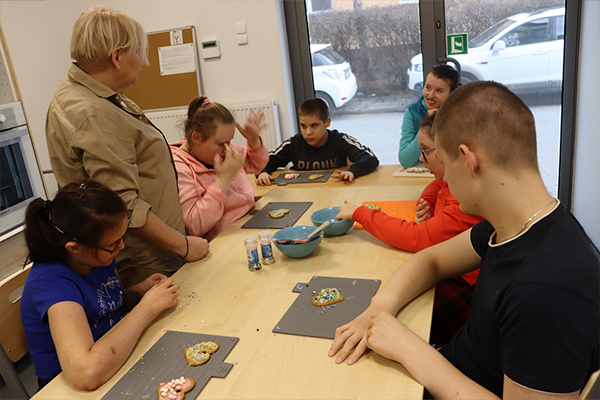 Podczas zajęć kulinarnych poświęconych pieczeniu pierniczków przypomnieliśmy zasady bezpiecznego zachowania w kuchni oraz zapoznaliśmy się z przepisem na te świąteczne wypieki. Następnie uczniowie z dużym zaangażowaniem wykrawali ciasto foremkami, tworząc różnorodne kształty, układali pierniczki na blaszce i wspólnie obserwowali proces pieczenia w piekarniku. Ważnym elementem zajęć była także stymulacja zmysłów – dzieci wąchały przyprawy wchodzące w skład przyprawy do piernika, takie jak cynamon, gałka muszkatołowa, goździki, imbir oraz kolendra, a także poznawały ich wygląd i fakturę. Na zakończenie dekorowaliśmy pierniczki pisakami lukrowymi, rozwijając sprawność manualną i kreatywność. Zajęcia były doskonałą okazją do rozwijania samodzielności, integracji sensorycznej, nauki poprzez działanie oraz wzmacniania emocji związanych ze wspólną pracą.