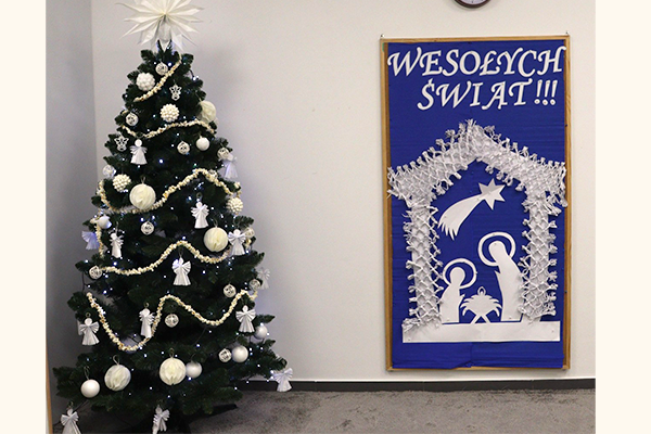 Czas Świąt Bożego Narodzenia wiąże się z tradycją ubierania choinki. W naszej szkole nie mogło zabraknąć tego rytuału. Uczniowie zawieszali bombki, gwiazdki, jabłka, łańcuchy, kolorowe światełka i aniołki. Świąteczne drzewko wygląda prześlicznie i wprowadziło magiczny nastrój.
