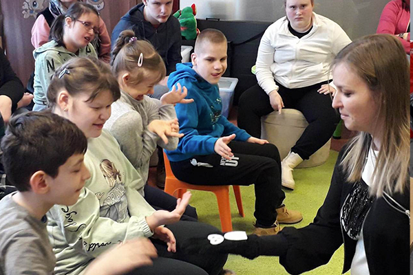 Po raz kolejny odwiedził nas Teatrzyk Skrzat z Krakowa. Uczniowie naszej szkoły specjalnej mieli okazję obejrzeć pełne magii i świątecznego nastroju przedstawienie pt. „List do Mikołaja”. Bohaterowie spektaklu zabrali dzieci w niezwykłą podróż do krainy Świętego Mikołaja, gdzie uczniowie spotkali się z takimi postaciami jak: lalka, pajacyk, bałwan, zajączek, miś, dziewczynka oraz Święty Mikołaj. Czy tylko dzieci piszą listy do Mikołaja? Nic bardziej mylnego! W tym roku swój pierwszy list napisały… zabawki. Uczniowie z dużym zaangażowaniem uczestniczyli w teatrzyku, aktywnie pomagając bohaterom w dostarczeniu listu do Mikołaja. Przedstawienie bardzo spodobało się naszym uczniom – z zainteresowaniem śledzili losy bohaterów, reagowali śmiechem, gestami i spontaniczną radością. Spotkanie z teatrem było nie tylko wspaniałą formą rozrywki, ale także okazją do rozwijania wyobraźni, wrażliwości emocjonalnej oraz umiejętności społecznych. Świąteczna atmosfera i bezpośredni kontakt z aktorami sprawiły, że wydarzenie na długo pozostanie w pamięci naszych uczniów.