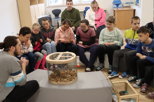 Podczas zajęć uczniowie poznawali zasady dokarmiania ptaków zimą, korzystając z