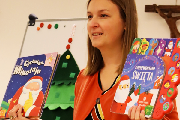 Dzieci ze szkoły specjalnej uczestniczyły w ubieraniu choinki. Z pomocą nauczyciela zawieszały ozdoby świąteczne oraz bombki. Za pomocą AAC Mówik wskazywały kolor wybranej bombki oraz określały, jakie ozdoby świąteczne znajdują się na choince. Każde dziecko miało możliwość aktywnego udziału w dekorowaniu drzewka, zgodnie ze swoimi indywidualnymi możliwościami. Zajęcia przebiegały w radosnej i bezpiecznej atmosferze, sprzyjającej integracji grupy. Wspólne ubieranie choinki rozwijało sprawność manualną, koordynację wzrokowo-ruchową oraz umiejętności komunikacyjne, a także wprowadziło dzieci w świąteczny nastrój, sprawiając im wiele radości.