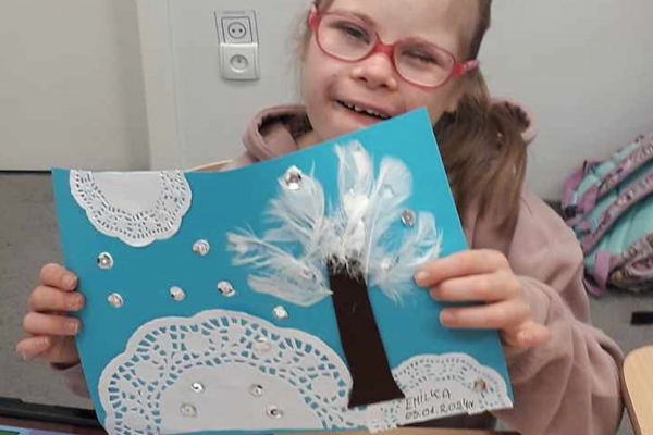W ostatnich dniach przed przerwą świąteczną uczniowie oddziału „I” z zaangażowaniem włączyli się w przygotowanie własnoręcznie wykonanych kartek bożonarodzeniowych. Zajęcia plastyczne stały się okazją do rozwijania kreatywności, wyobraźni oraz zdolności manualnych. Podczas warsztatów uczniowie tworzyli kartki przedstawiające świąteczne choinki oraz bombki. Do ich wykonania wykorzystali kolorowy papier, brokatowe gwiazdki, cekiny, kryształki, wstążki oraz ozdobne elementy dekoracyjne. Powstały kompozycje pełne kolorów, blasku i świątecznego nastroju. Każda kartka była wyjątkowa i niepowtarzalna. Własnoręczne przygotowanie kartek sprawiło uczniom wiele radości, a wspólna praca sprzyjała integracji oraz budowaniu świątecznej atmosfery w naszej szkole. Gotowe prace zostały przekazane wraz z serdecznymi życzeniami „Wesołych Świąt”. To piękny przykład na to, że najcenniejsze prezenty to te wykonane z sercem.