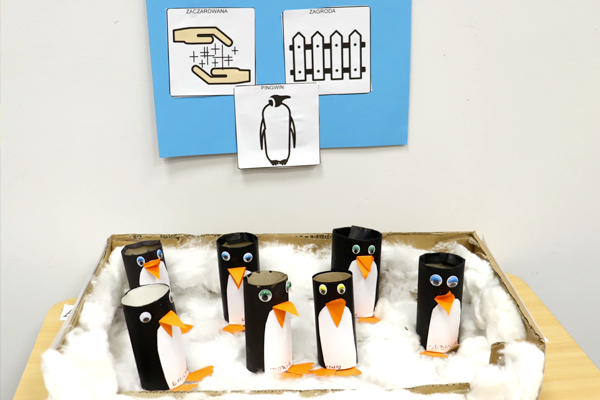 Nasza szkoła regularnie uczestniczy w comiesięcznych spotkaniach organizowanych w publicznej bibliotece dla dzieci. To wyjątkowa okazja, aby rozwijać zainteresowania czytelnicze uczniów oraz zachęcać ich do sięgania po wartościową literaturę w przyjaznej i inspirującej atmosferze. W lutym mieliśmy przyjemność poznać historię Pingwinka – bohatera książki „Bądź dzielny, Pingwinku”. Opowieść ta stała się punktem wyjścia do rozmowy o odwadze, wytrwałości oraz radzeniu sobie z trudnościami. Następnie uczniowie wzięli udział w angażującej zabawie polegającej na dopasowywaniu w pary pingwinów uprawiających różne sporty zimowe, co nie tylko rozwijało spostrzegawczość, ale także dostarczyło wiele radości. Na zakończenie spotkania dzieci wykonały kreatywną pracę plastyczną przedstawiającą pingwina. Wykorzystały do tego różnorodne materiały, takie jak kasza manna, kakao oraz plastelina, rozwijając przy tym swoją wyobraźnię i zdolności manualne. Serdecznie dziękujemy za kolejne inspirujące spotkanie i już z niecierpliwością czekamy na następne!😊