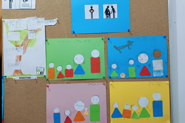 Podczas zajęć rozwijających kreatywność uczniowie oddziału „I” przygotowali wyjątkowe laurki z okazji Dnia Babci i Dziadka. Na początku dzieci wybrały kolorowe kartki (zielone i granatowe), które złożyły na pół, tworząc bazę laurki. Na przedniej stronie przykleiły białą ramkę, a następnie ozdobny papier w różnorodne wzory – kwiaty, kropki czy kratkę. Każde dziecko mogło samodzielnie wybrać motyw według własnego pomysłu. Najważniejszym elementem pracy było serce.